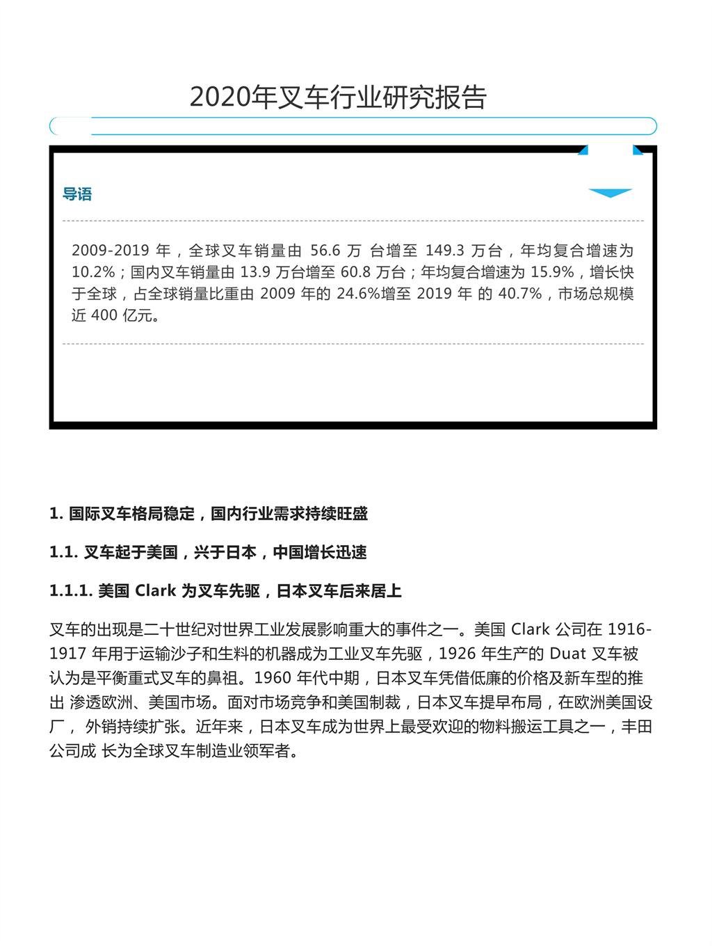 2020年叉車行業(yè)報告-浙商證券(轉載)(一)