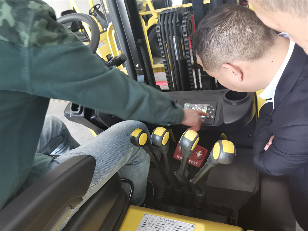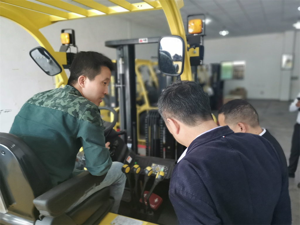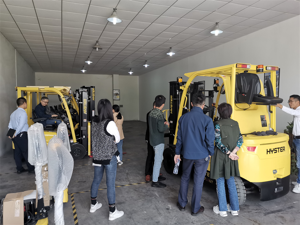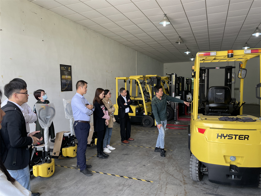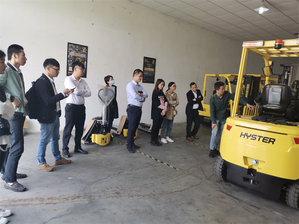 在會議室上完理論課后,大家一起轉移到了東莞惠客隆叉車東莞分公司的展廳開展實踐課。